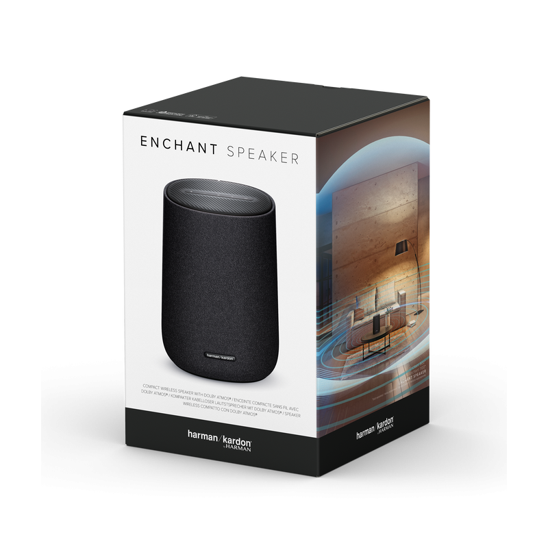 Le Harman Kardon Enchant Speaker associe un design intemporel à une qualité sonore exceptionnelle. Avec la technologie Dolby Atmos® Music, il diffuse un son 3D immersif qui remplit toute la pièce. Ses haut-parleurs orientés vers le haut et sur les côtés créent une scène sonore riche dans un format compact.